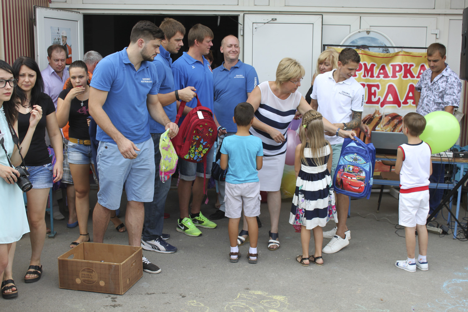 Финальной частью праздника стало вручение организаторами и игроками гандбольной команды «Динамо» рюкзаков со школьными принадлежностями и сладких подарков ребятишкам.